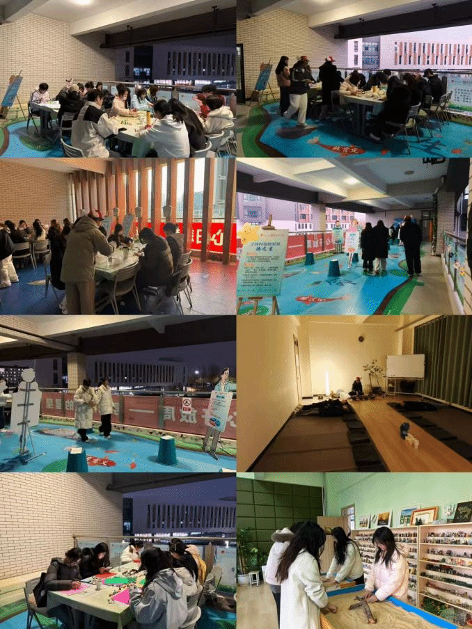 各系二级心理辅导站也同步开展特色活动:例如文化传媒系“文心艺境”二级心理辅导站开展的“非遗拓印·十二生肖系列”、沙包投掷网靶盘、“闪闪发光的自己”等活动,将传统文化与心理疗愈深度融合,为构建积极健康、温暖包容的校园心理环境注入更多力量;小学教育系“知予”二级心理辅导站开展的“星光闪耀 遇见自己”主题活动,通过探索自我—“每个人都是一颗闪亮的星”、同伴互评与欣赏—“星光放大镜”、故事分享与启发—“星光成长记”、集体共创与支持—星光优点之树等环节,引导学生聚焦自身优势,增强自我认同感与自信心;数字经济与数字技术系“心有所数”二级心理辅导站通过“美育 + 劳育沉浸式体验”帮助学生发现自身闪光点,提升心理韧性。